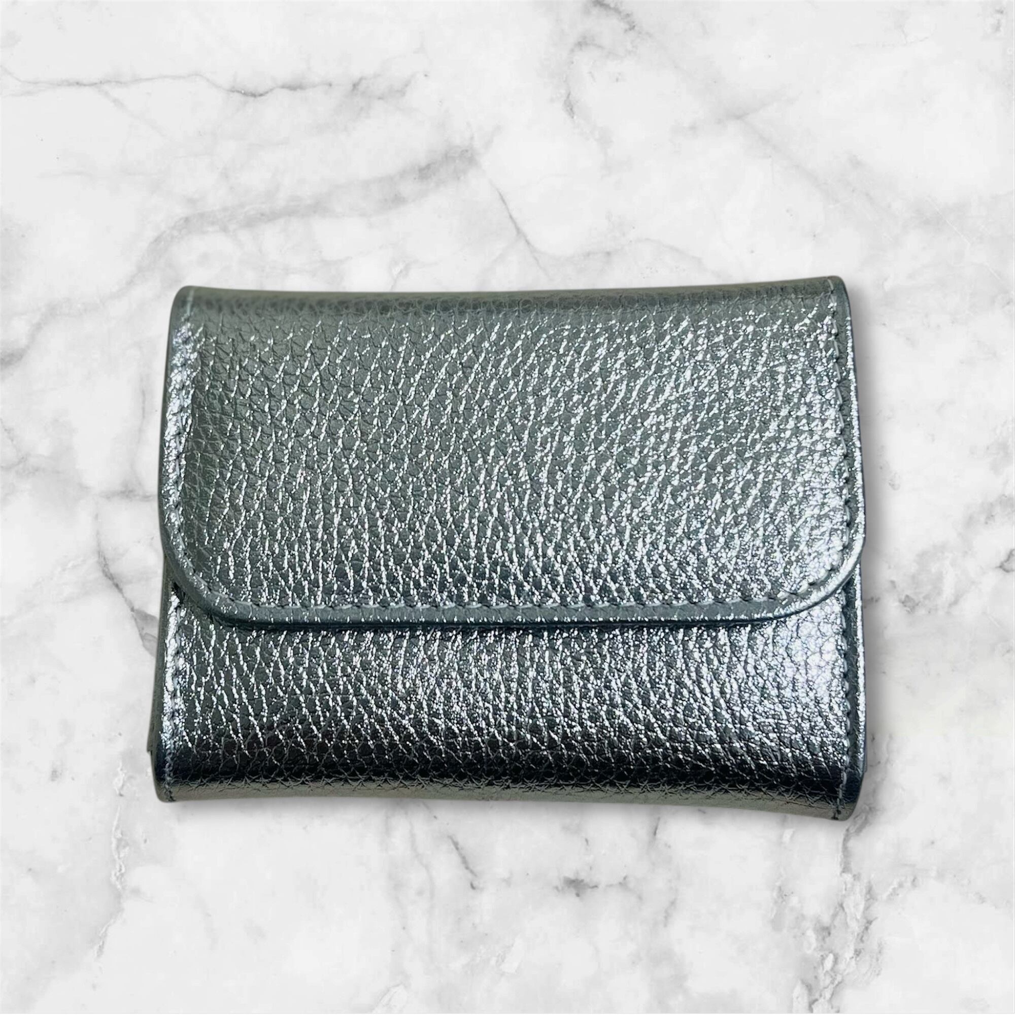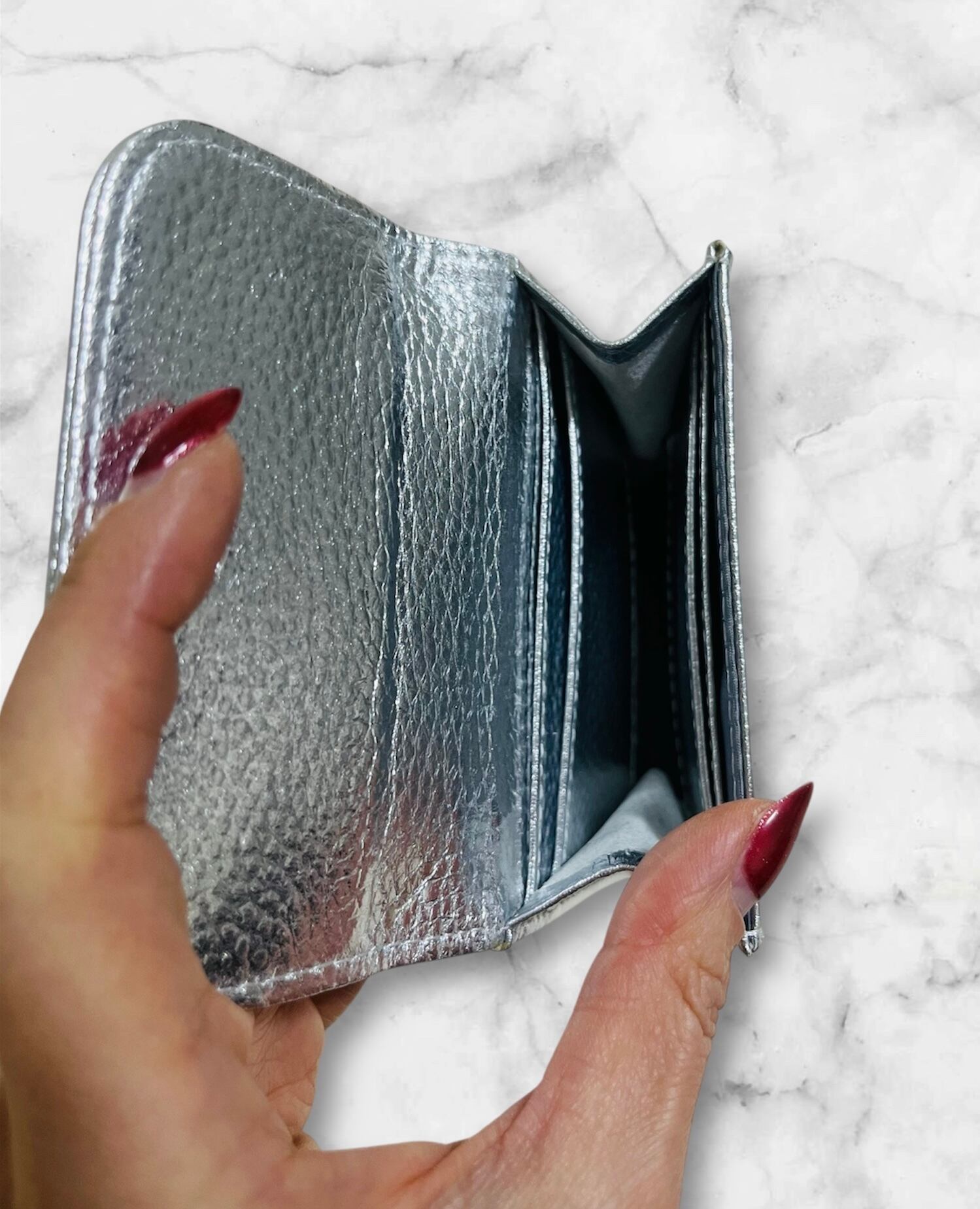高級本革 ミニ財布 カードケース シルバー おしゃれ☆韓国