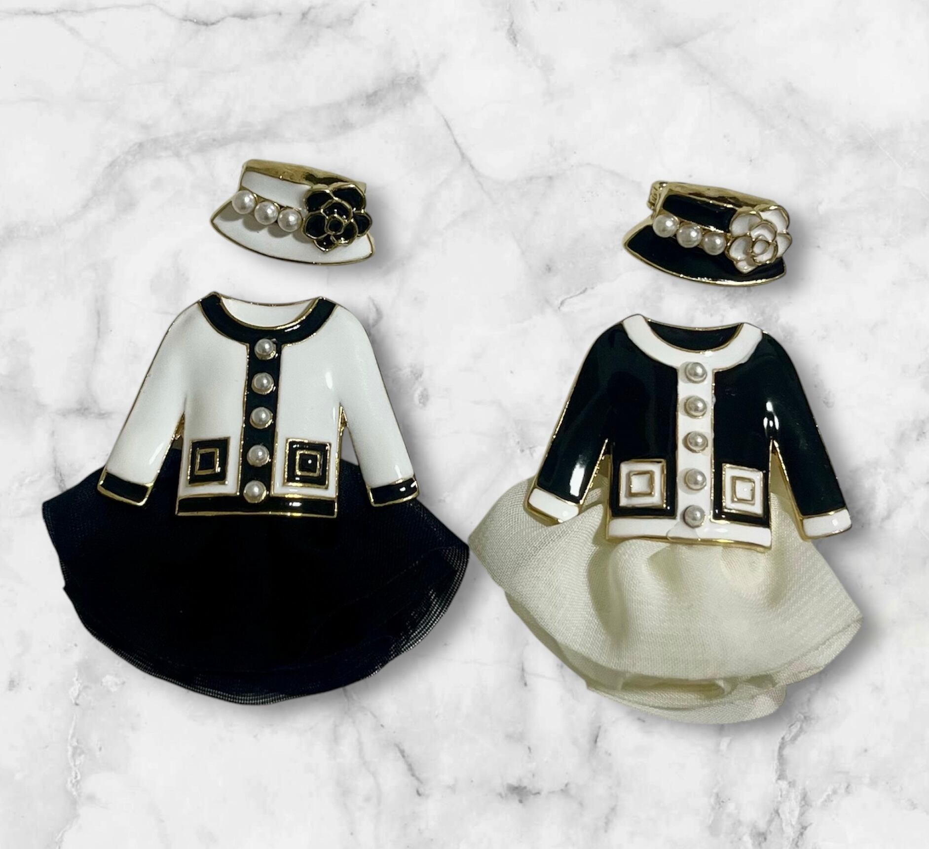 帽子とドレスに分かれているブローチになります。