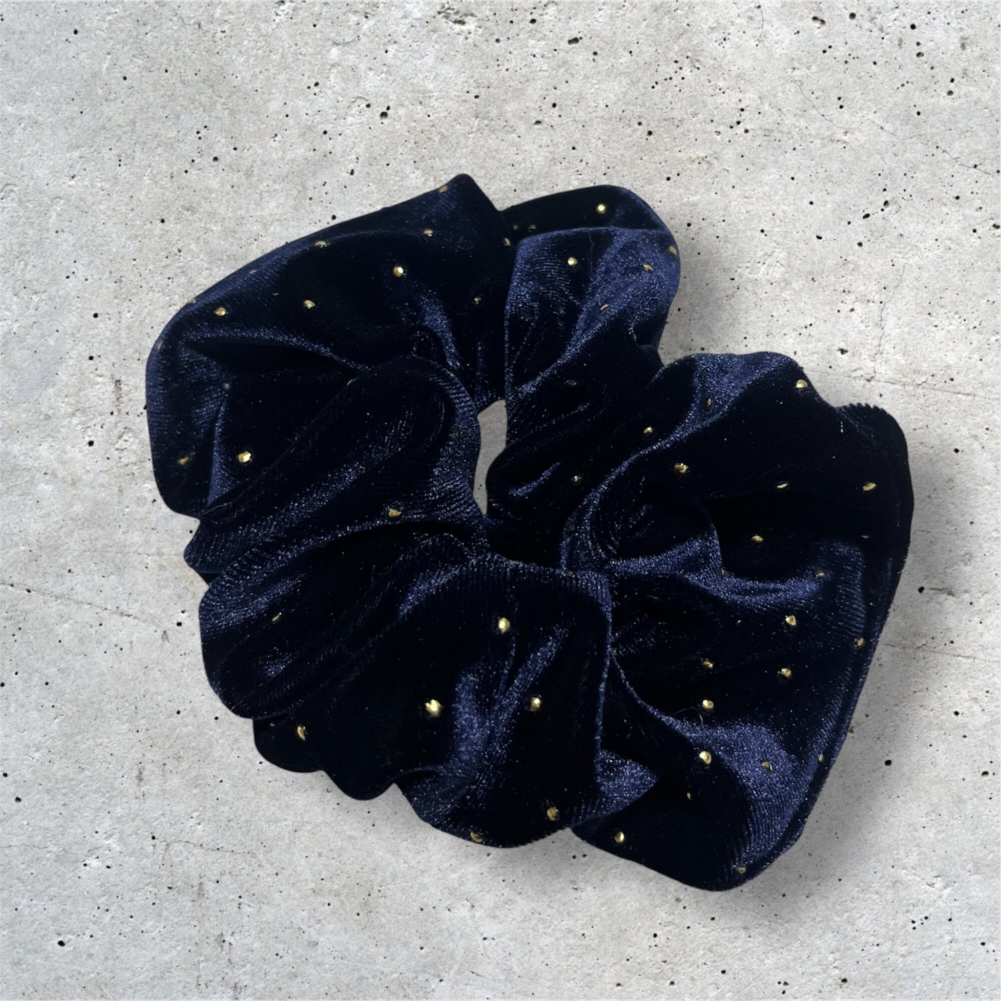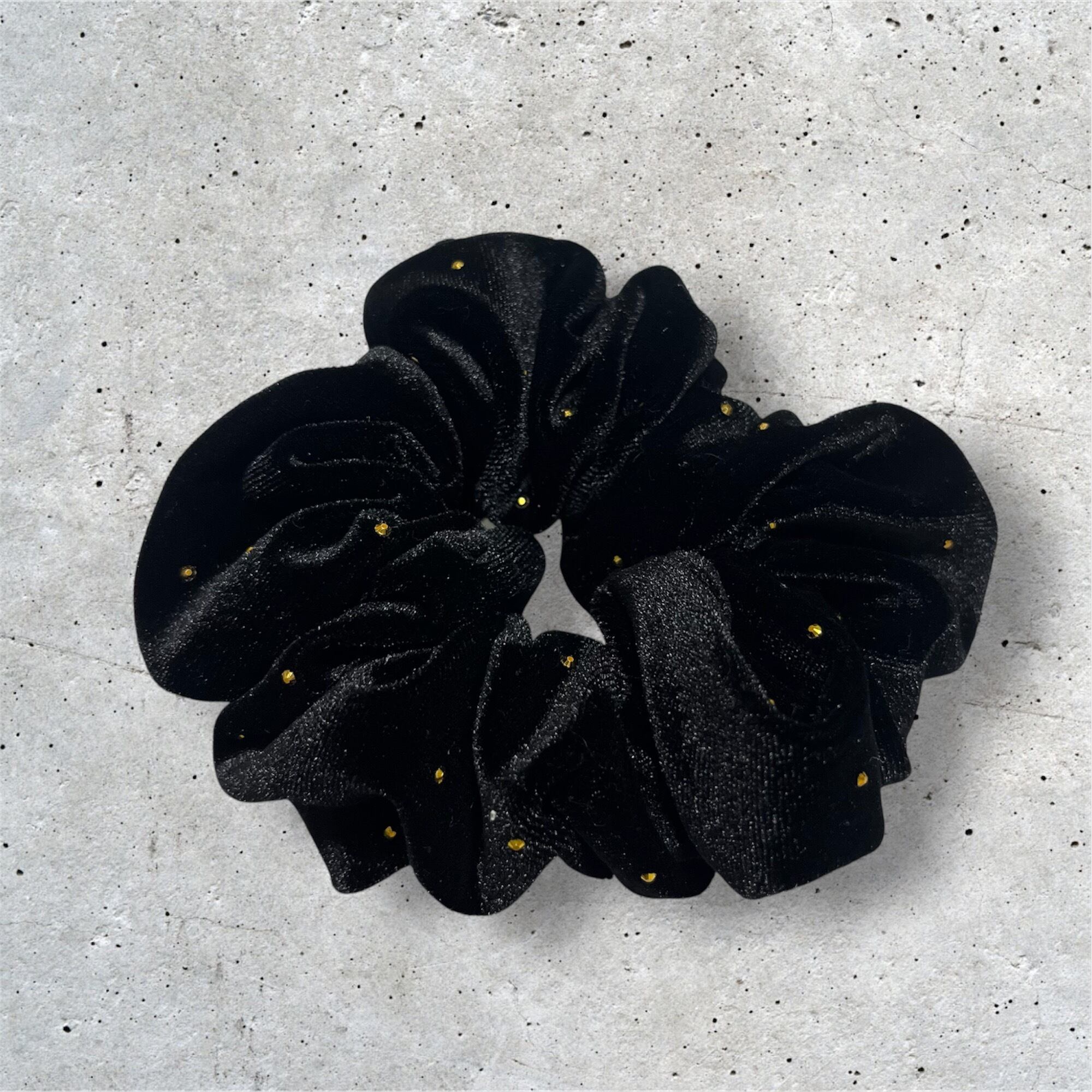 ゴールドのメタルスタッズがドット柄みたいで可愛いベロアシュシュです。
