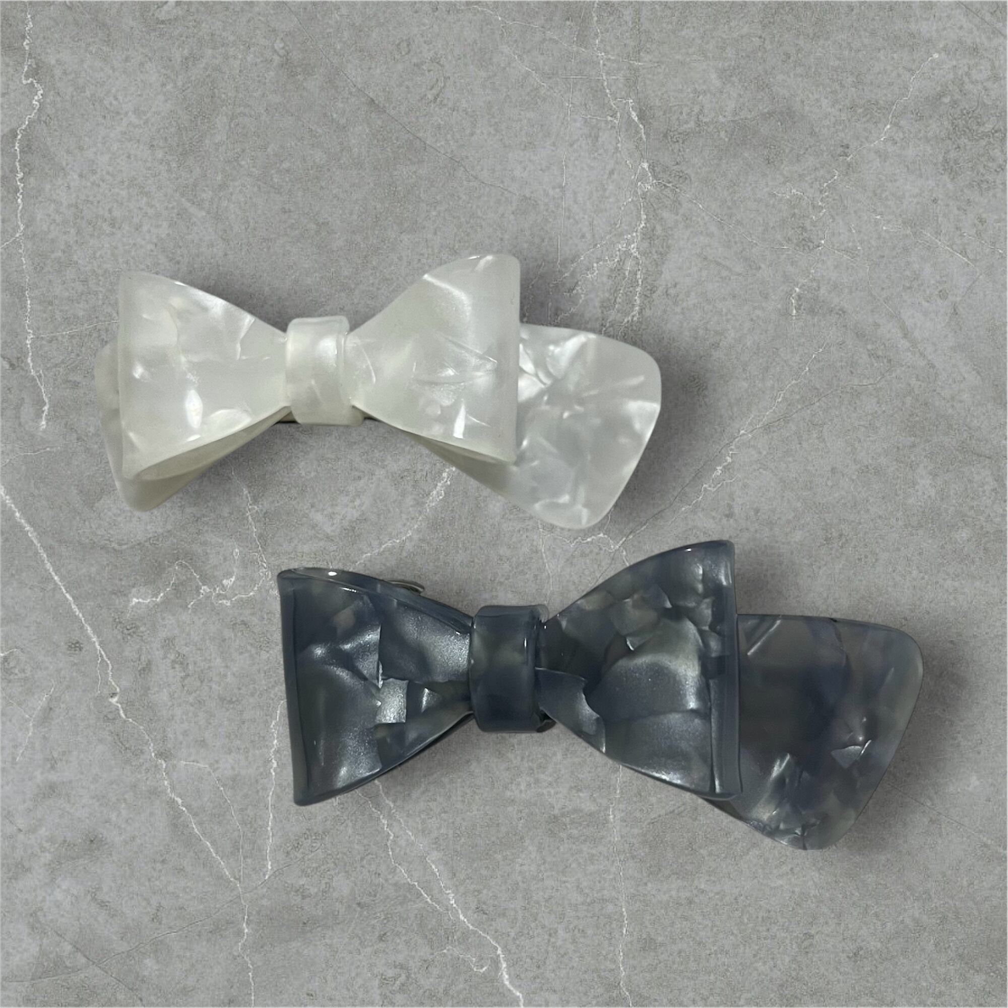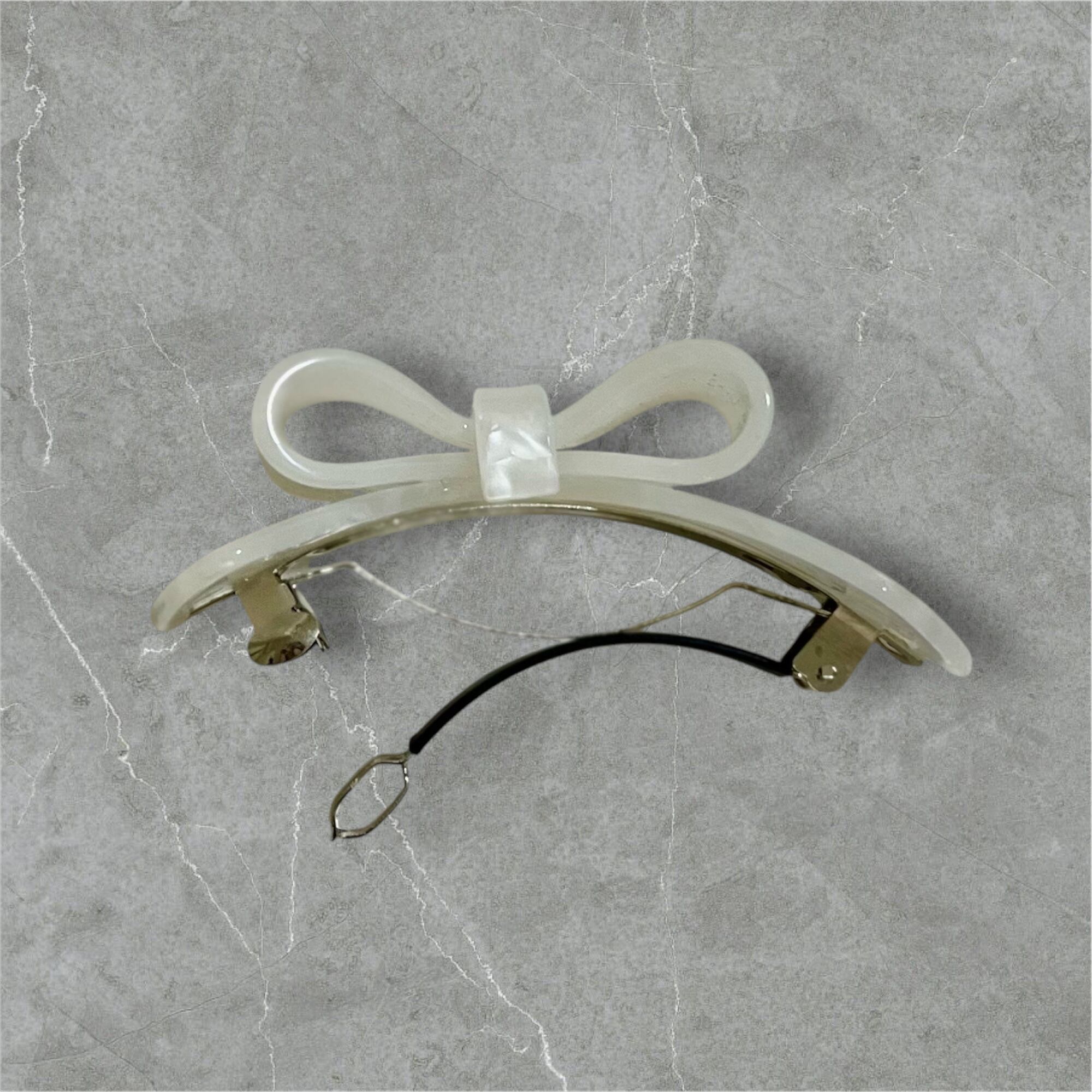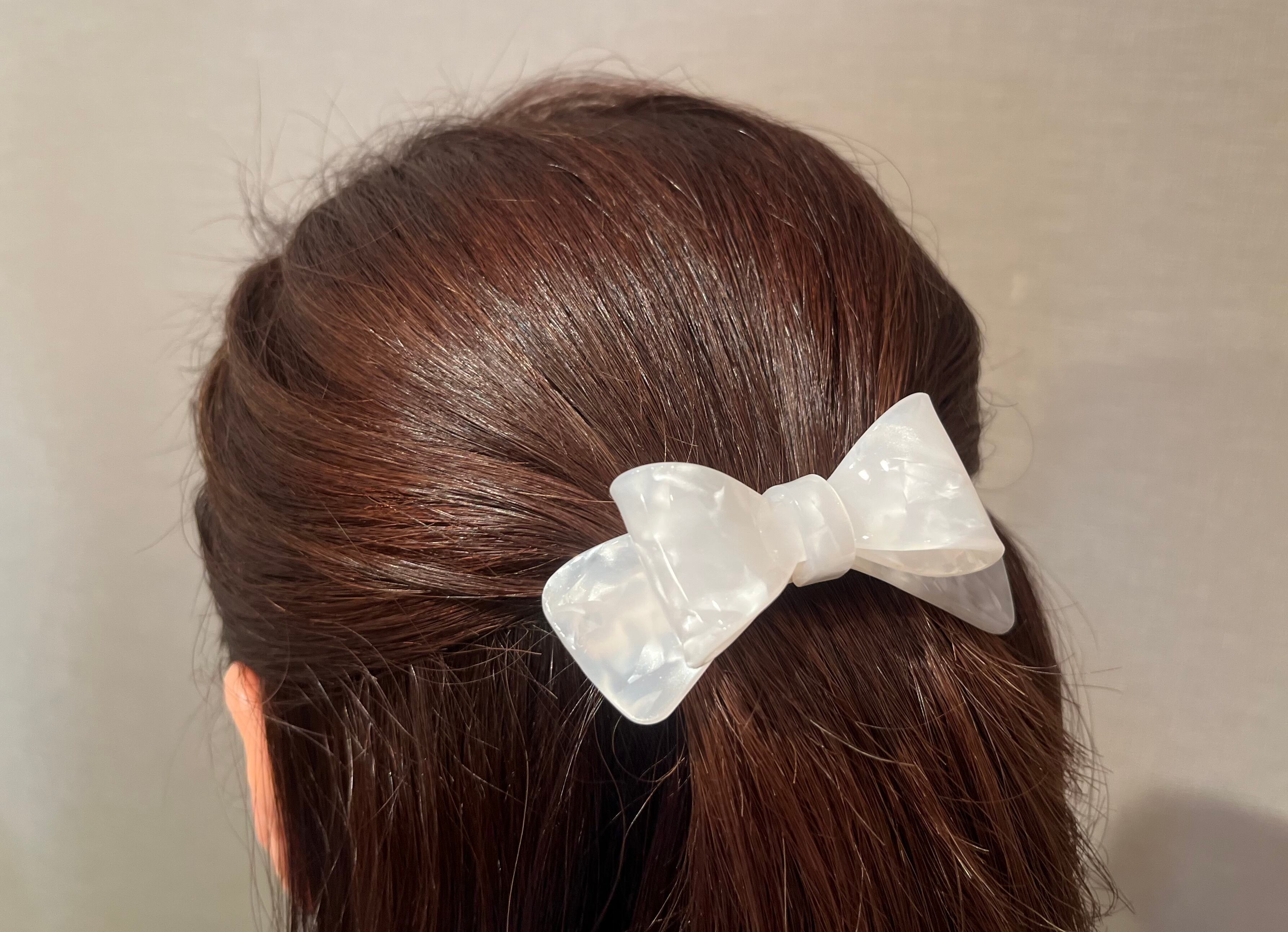 かわいらしいリボンのデザインとシェル風の輝きが特徴で、髪型にエレガントさを加えます。