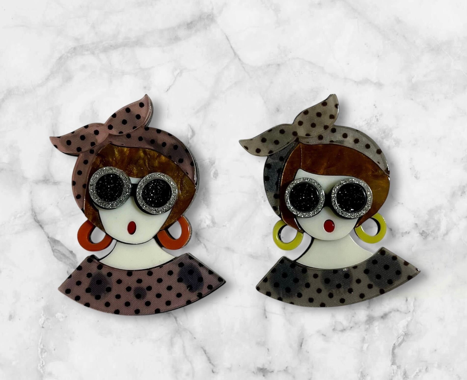ユニークでカラフルなデザインが目を引く、とっても可愛いブローチです。