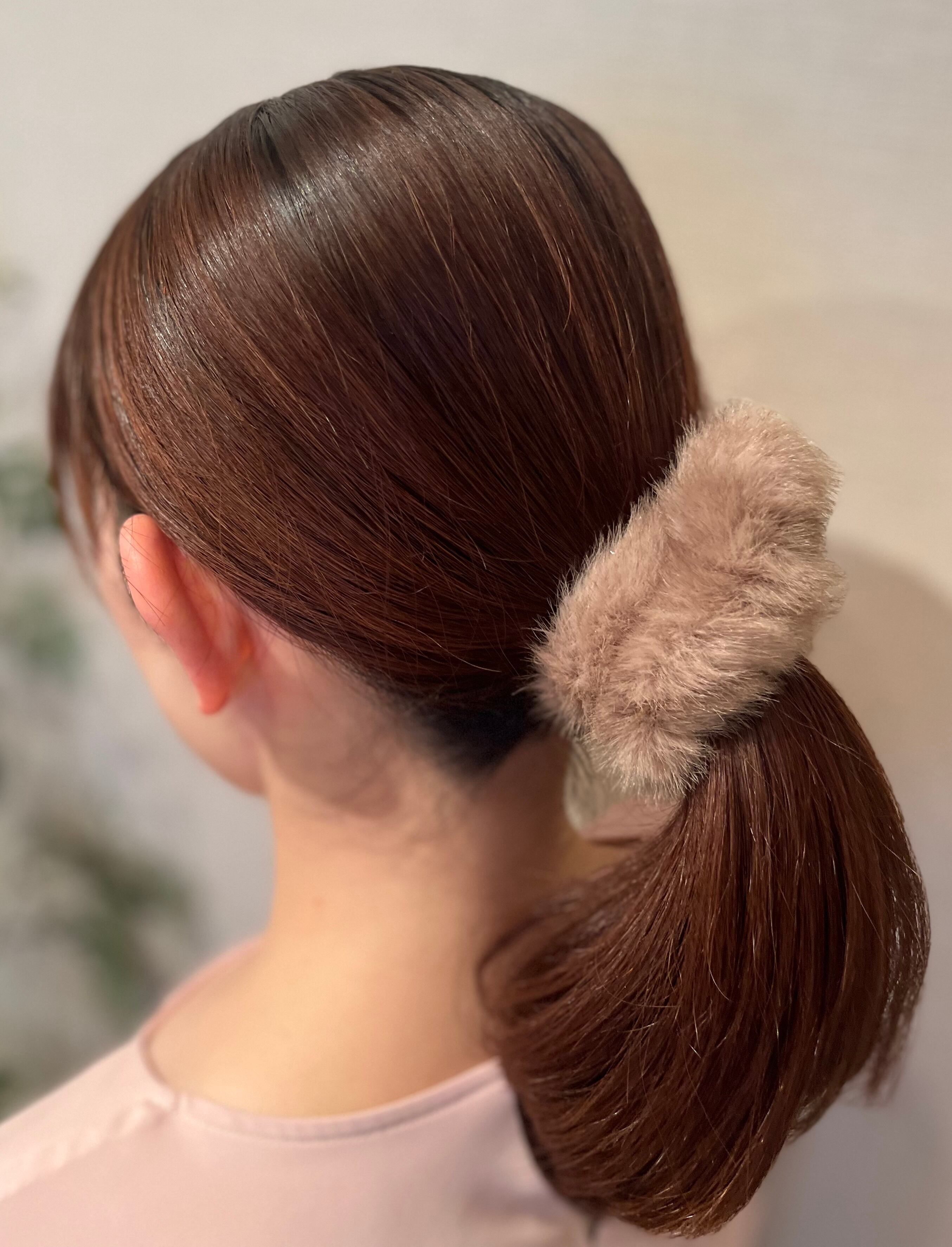 ふわふわのファー素材が髪に優しく、まとめ髪をかわいく、エレガントに演出してくれます。
