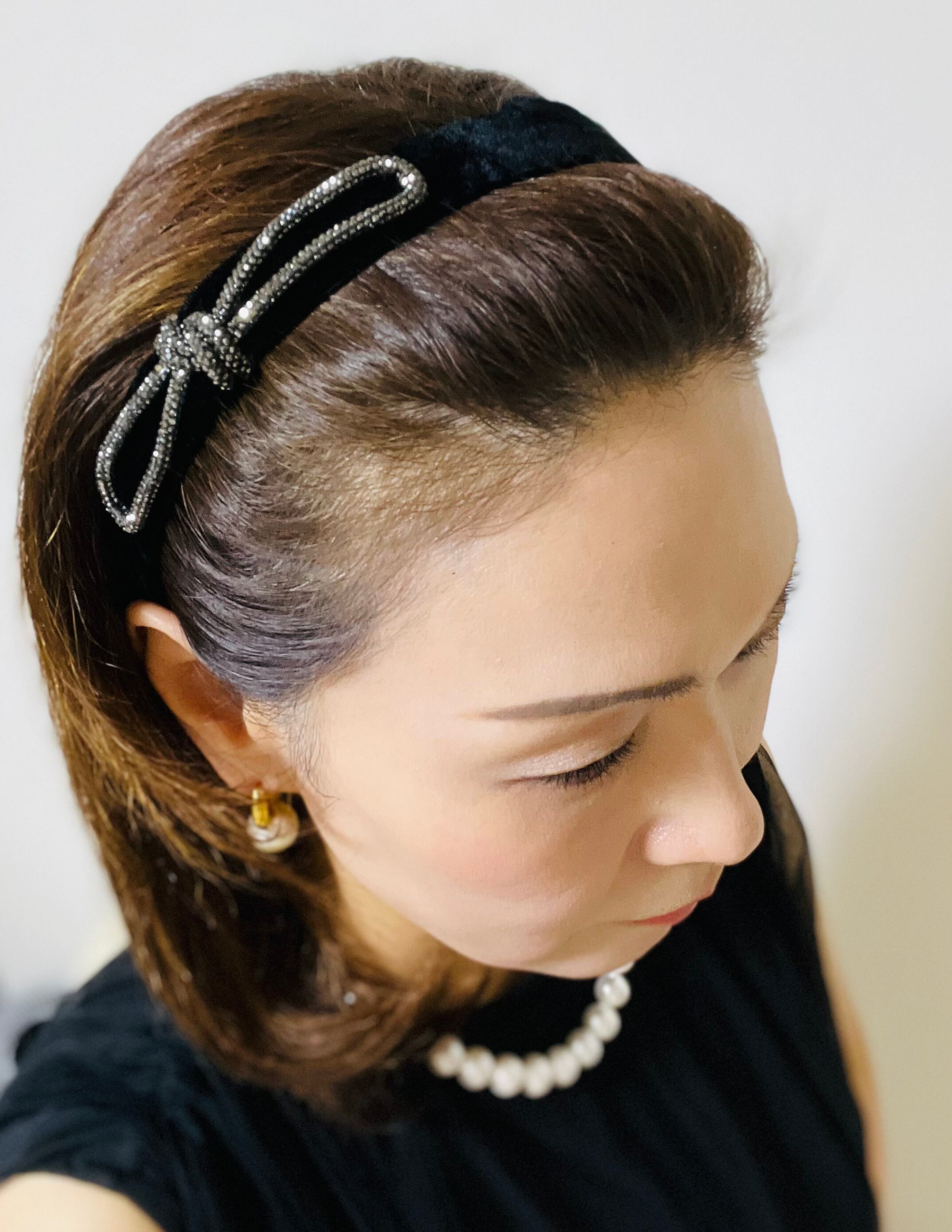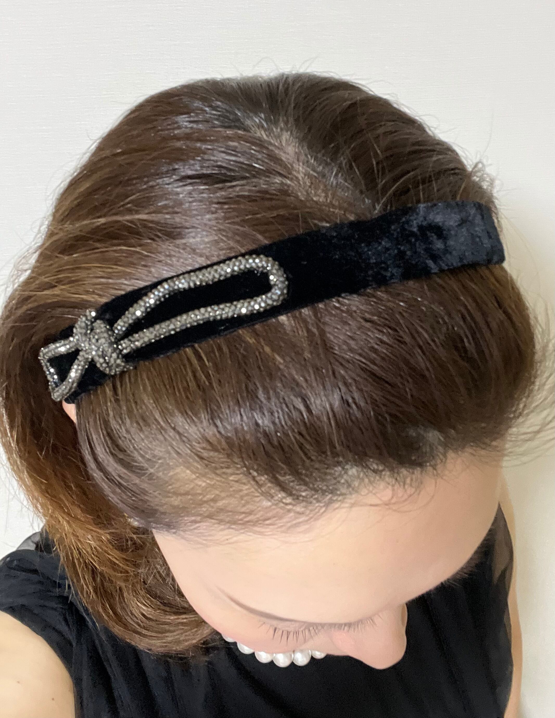 カチューシャ ベロア ビジューリボン ヘアアクセサリー エレガント ゴージャス☆韓国