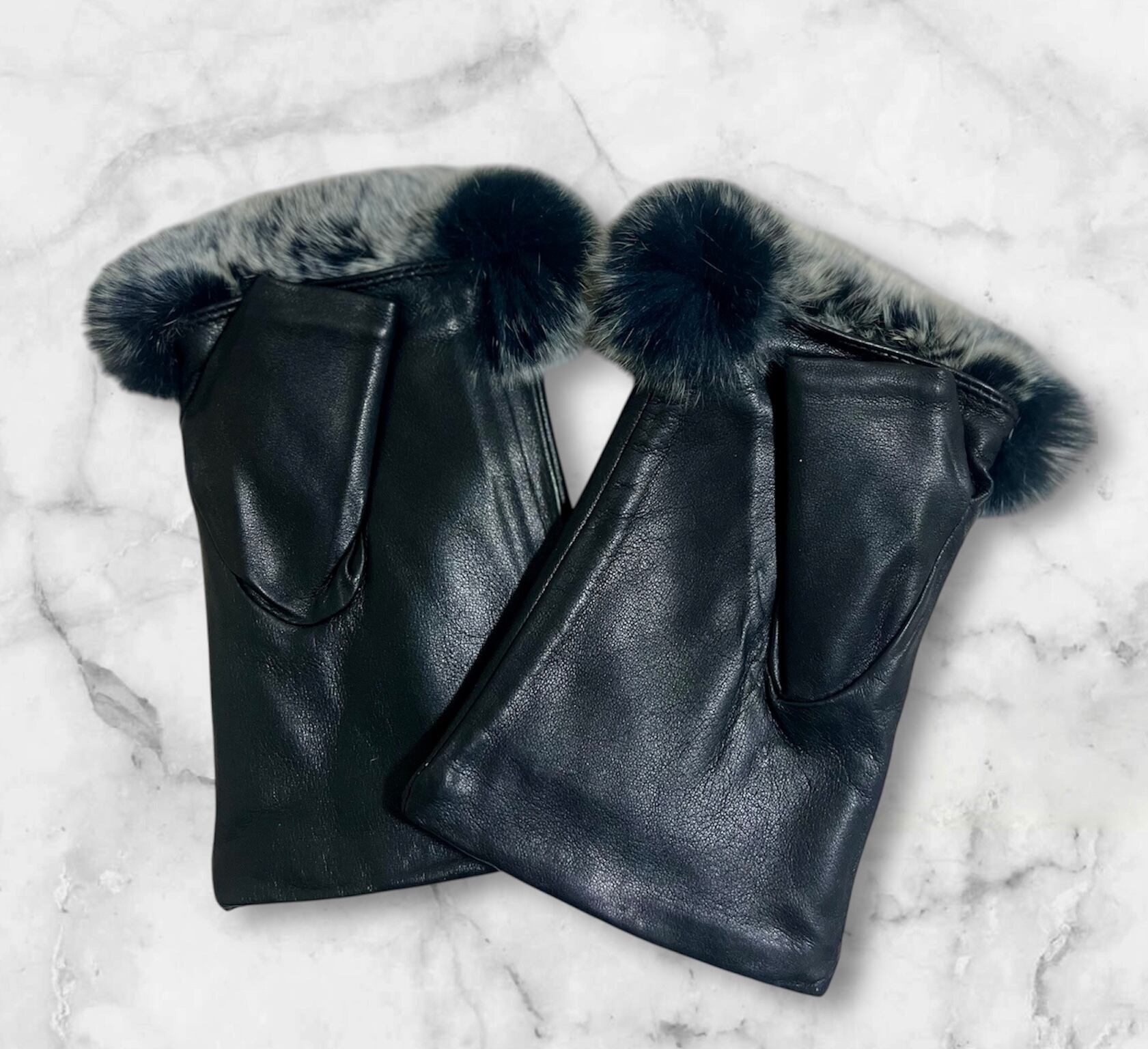 高級レザーのラム革を使用した指なし手袋は、リアルファー付きで温かさとスタイルを両立させた一品です!
